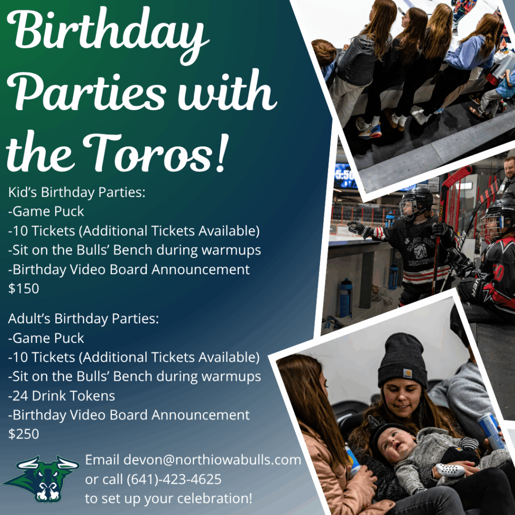 The Mason City Toros have packages to help kids of all ages celebrate their big day at the hockey game!