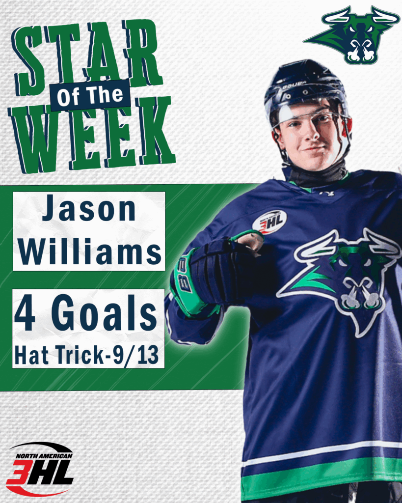 In the Friday night matchup, Jason scored the first goal of his NA3HL career, which ended up being the only goal the Toros scored that night as the team earned a point in an overtime defeat. The next night, Saturday, Williams recorded a hat trick, which included the Toros’ first empty net goal of the season.