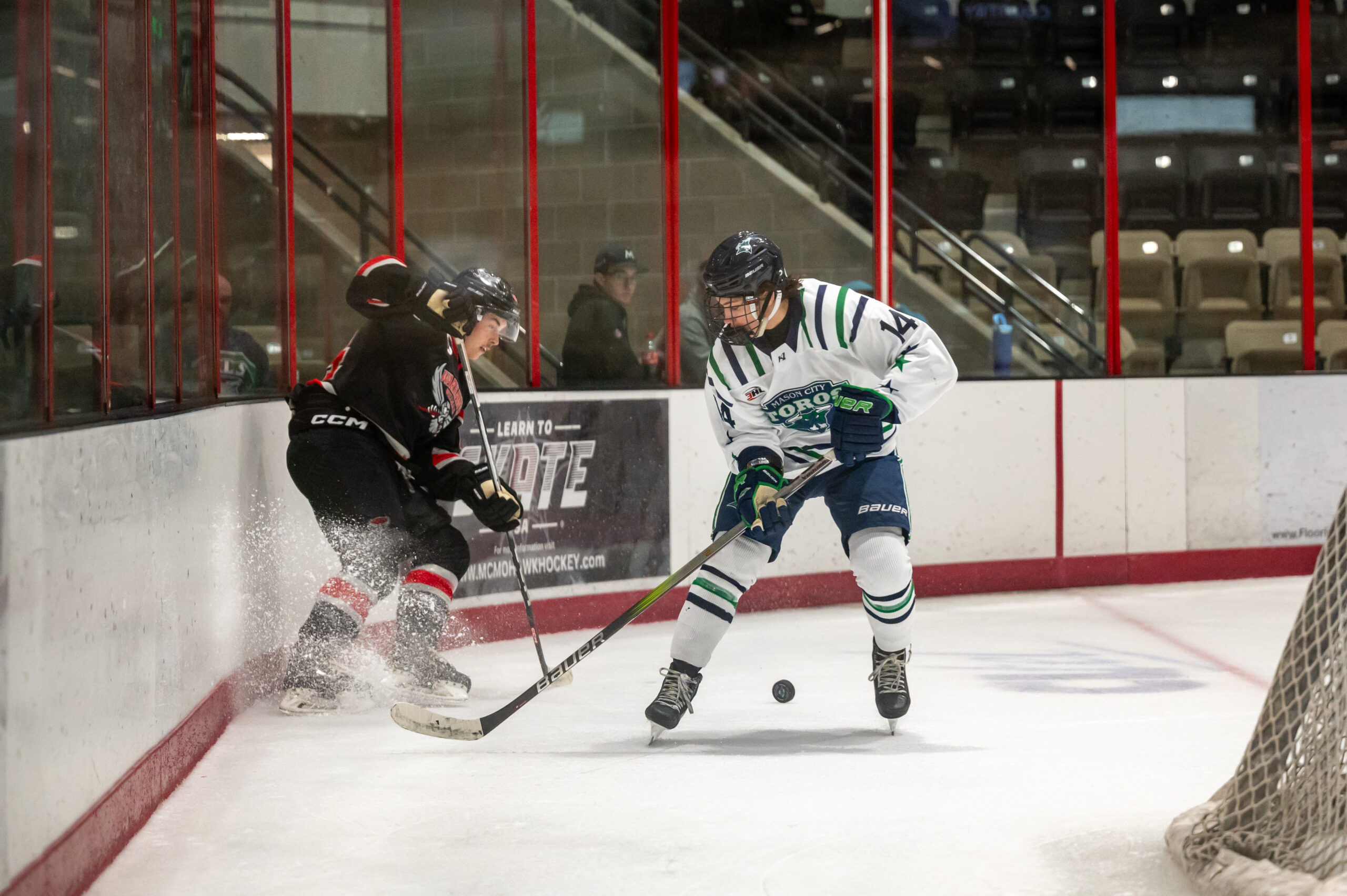 Willmar, MN- The Mason City Toros and Willmar WarHawks put on the highest scoring game of the 2023-24 NA3HL season on Saturday night, combining for 17 goals in a 9-8 overtime thriller. Mason City emerged with the win to return to .500 and build a ten-point cushion over the WarHawks for the fourth and final playoff spot in the NA3HL’s West Division.